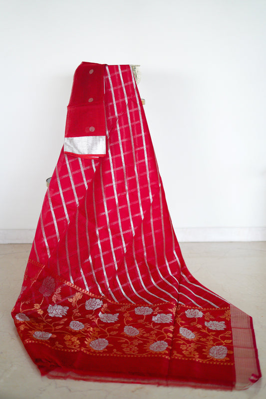 Sindoori Red Floral Jaal Saree with Leheriya Palu
