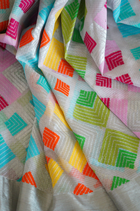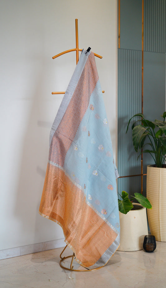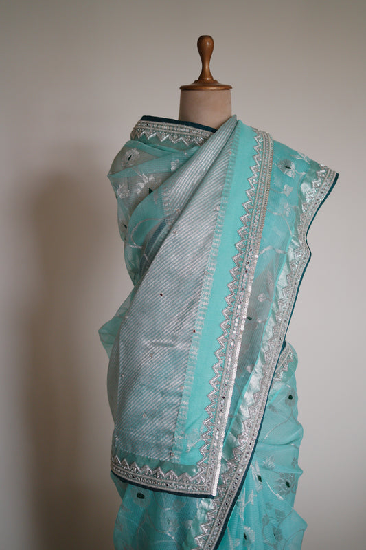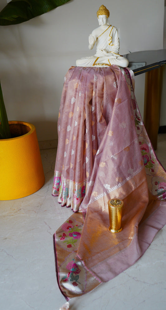 Single Tissue Onion Pink Saree with Floral Border and Butas