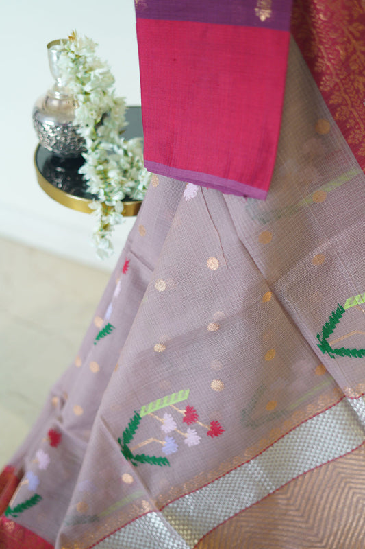 Purple Non Tissue Saree with Kanchi Border and Butis