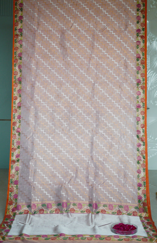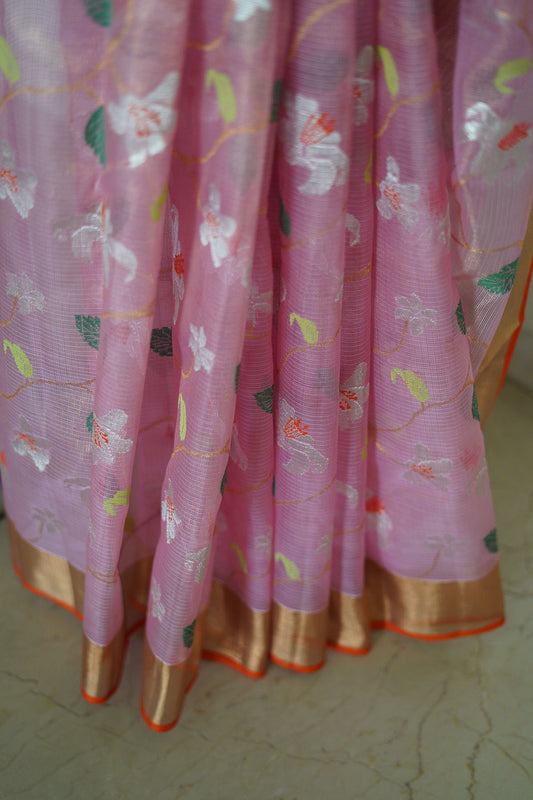 Rose pink single tissue saree in floral with a beautiful orange saree