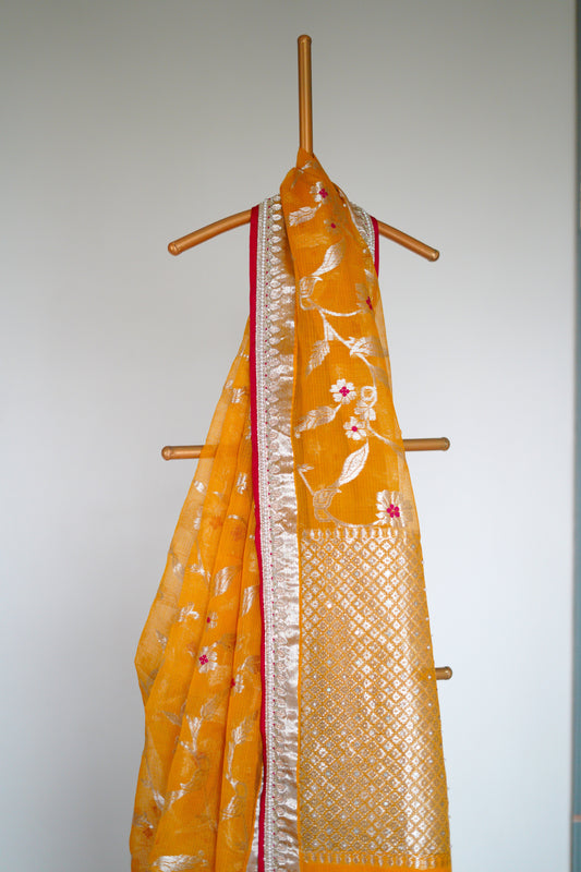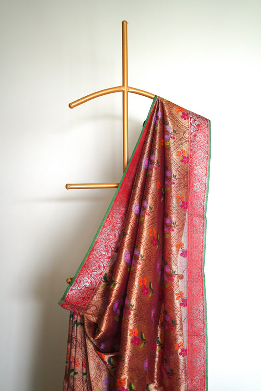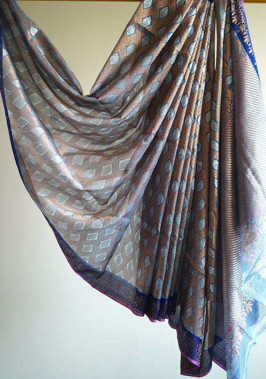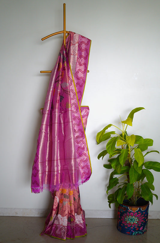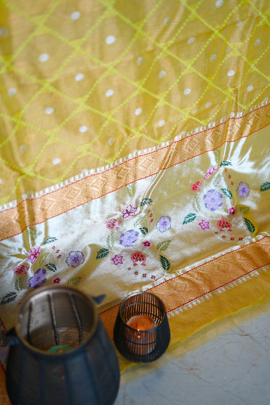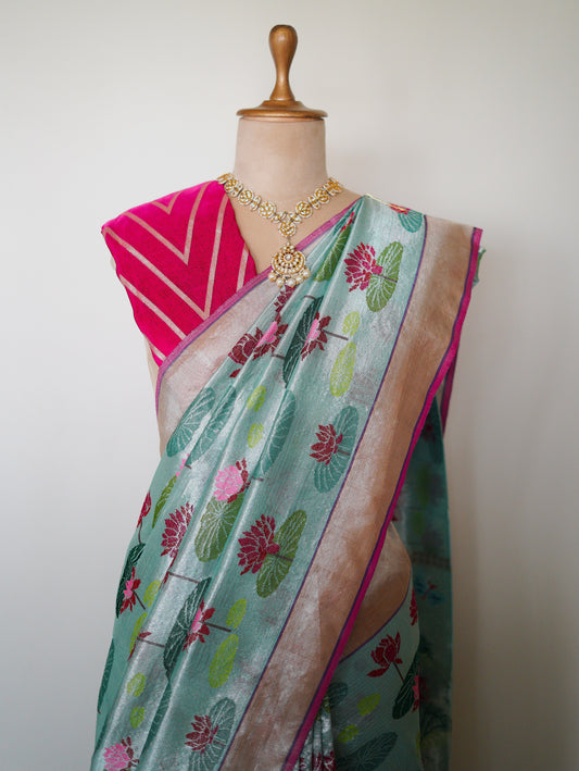 Pichwai Lotus Motif Jaal in A Double Tissue Saree