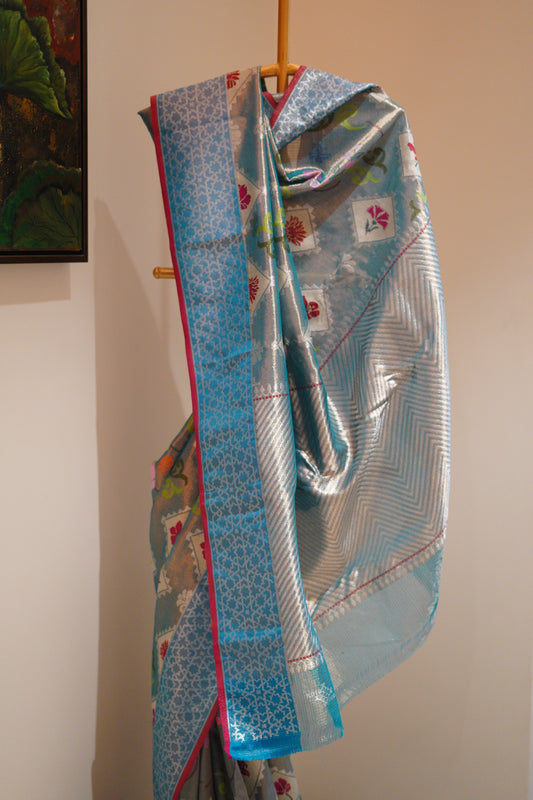 Gorgeous Blue Saree with 6 Inch Zari Border